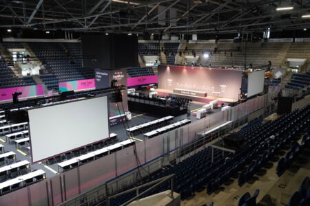 Für den Eurovision Song Contest 2025 in Basel hat Christinger AG in kürzester Zeit zahlreiche Flächen in der Main Venue mit Folien gestaltet – mit Materialien und Beratung von Frischknecht AG.
